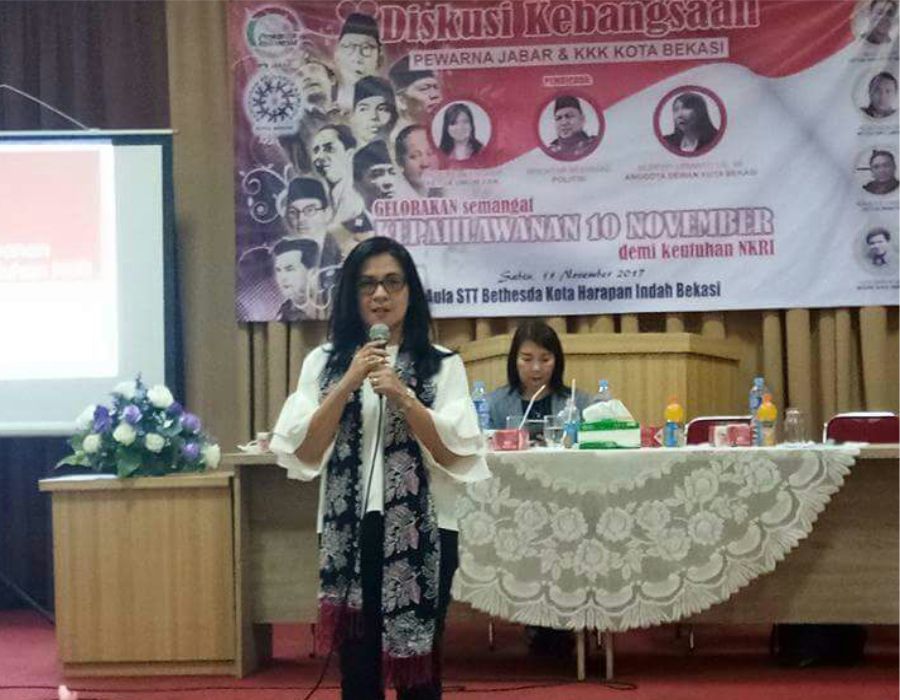 BEKASI, WARTANASRANI.COM – Jelaskan apa dan siapa Kerukunan Keluarga Kawanua (KKK) menjadi awal pemaparan Angelica Tengker, Ketua Umum Kerukunan Keluarga Kawanua dalam acara Diskusi Kebangsaan yang diselenggarakan KKK Kota Bekasi bekerjasama dengan Persatuan Wartawan Nasrani Indonesia (Pewarna) Jawa Barat, di Aula STT Bethesda Bekasi, sabtu, (11/11/2017).